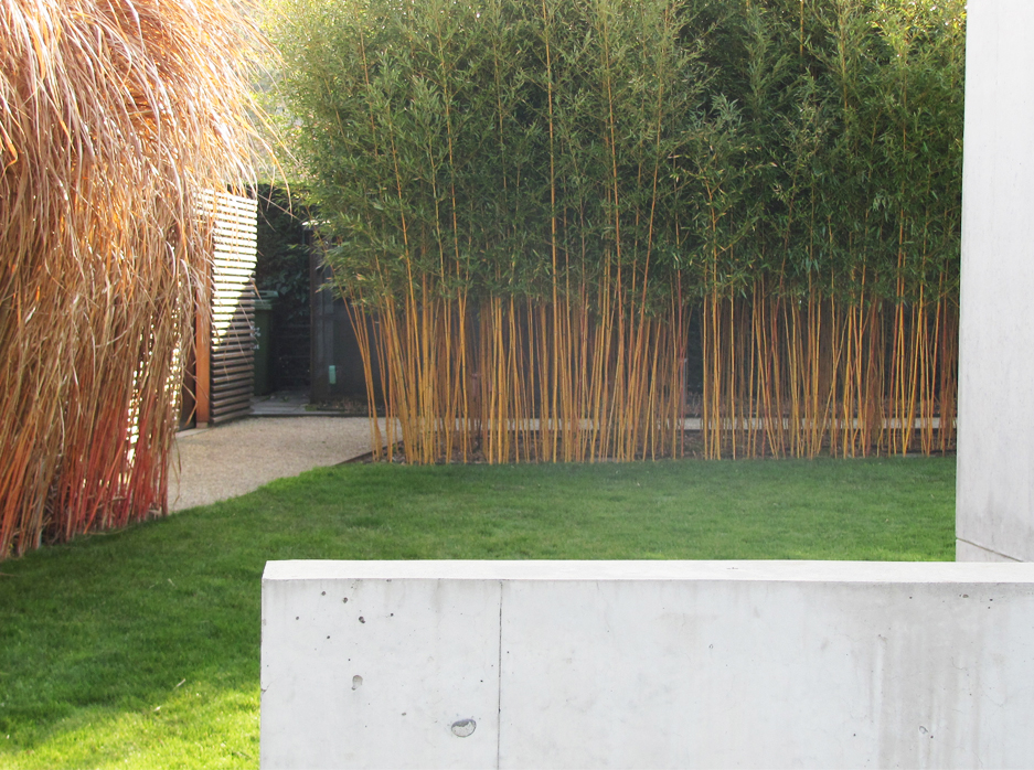 Dans le cadre d’une extension d’habitat de 3bm3, reprise d’un jardin lignes et textures de 1‘500 m². Prestations SIA 105 complètes, 2006. Suivi évolutif du jardin, 2007-2019.