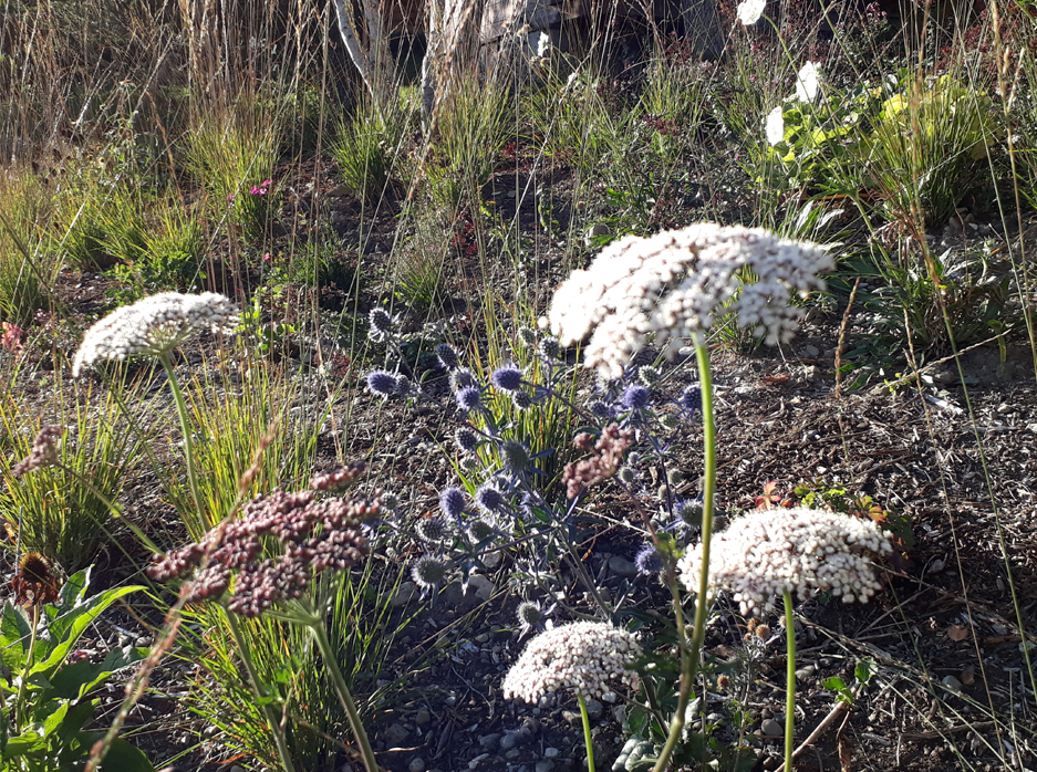 Création d’un jardin alpin de 2'000 m². Travail sur l’expression naturelle et la pierre. Prestations SIA 105 complètes, 2017-2018. Suivi évolutif du jardin, 2018-2019.