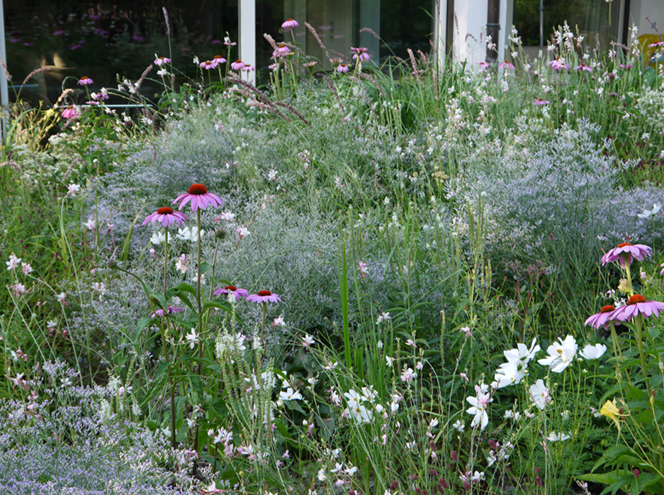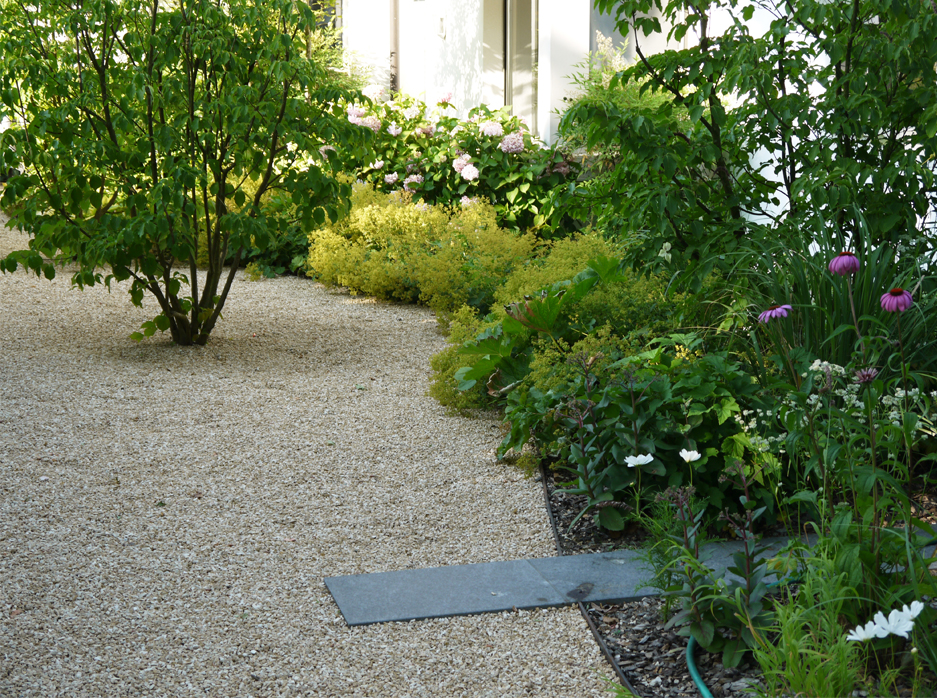 Transformation d’un jardin privatif de 1'450 m². Travail sur les couleurs Prestations SIA 105 complètes, 2015-2018. Suivi évolutif du jardin, 2016-2019.