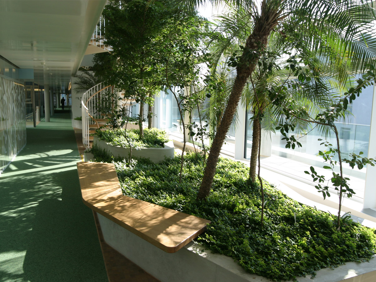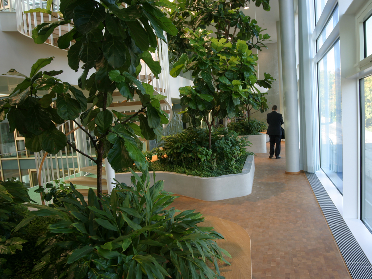 Aménagements intérieurs et extérieurs, liés à la Salle de Conférence de Behnisch Architekten.Prestations SIA complètes en 2 étapes, 2002-2015.