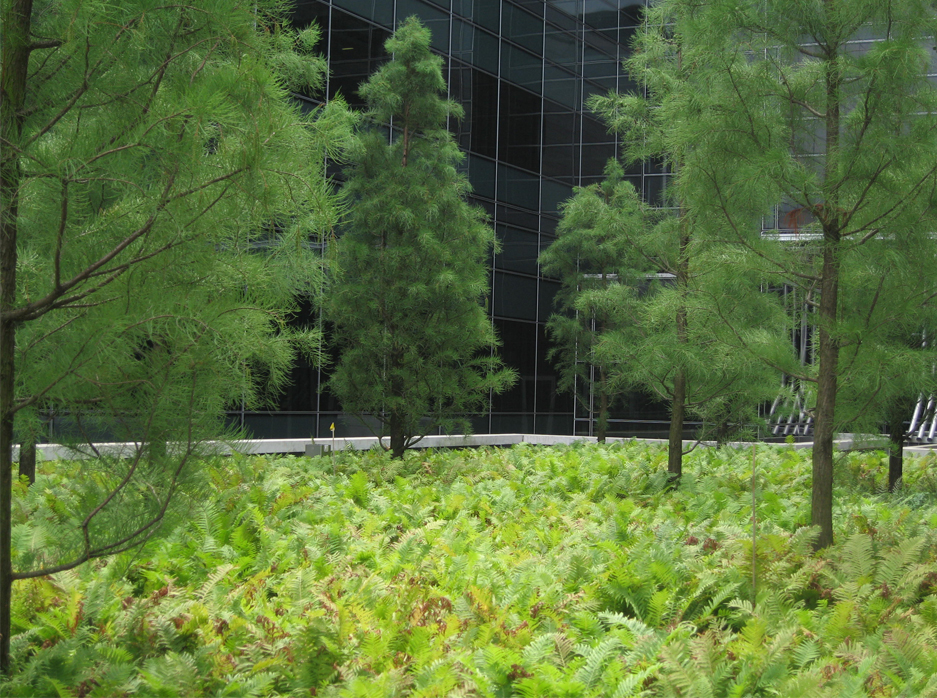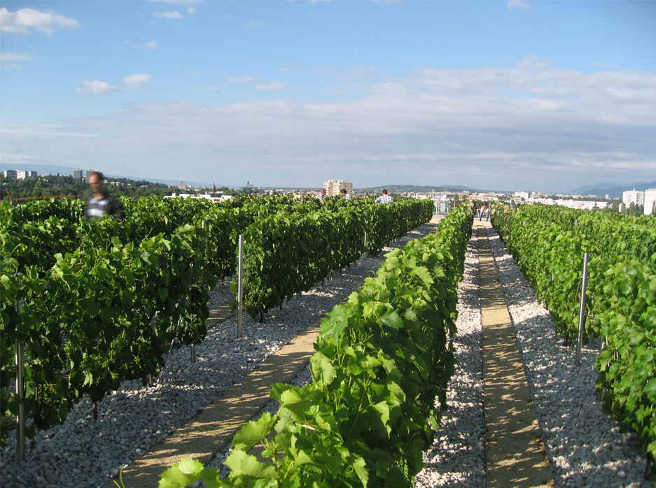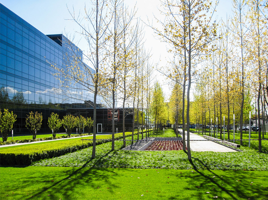 Aménagements d’espaces collectifs en rez et toitures sur plus d’un hectare, sur l’un des sites du groupe. Prestations SIA 105 complètes, 2006-2007. Etude complémentaire en toiture, 2018.