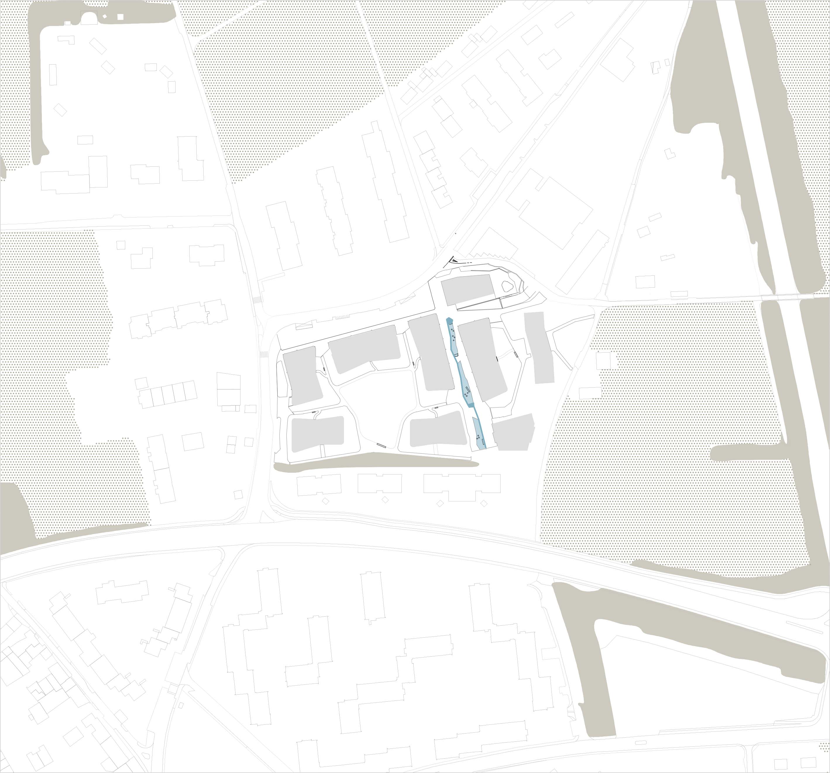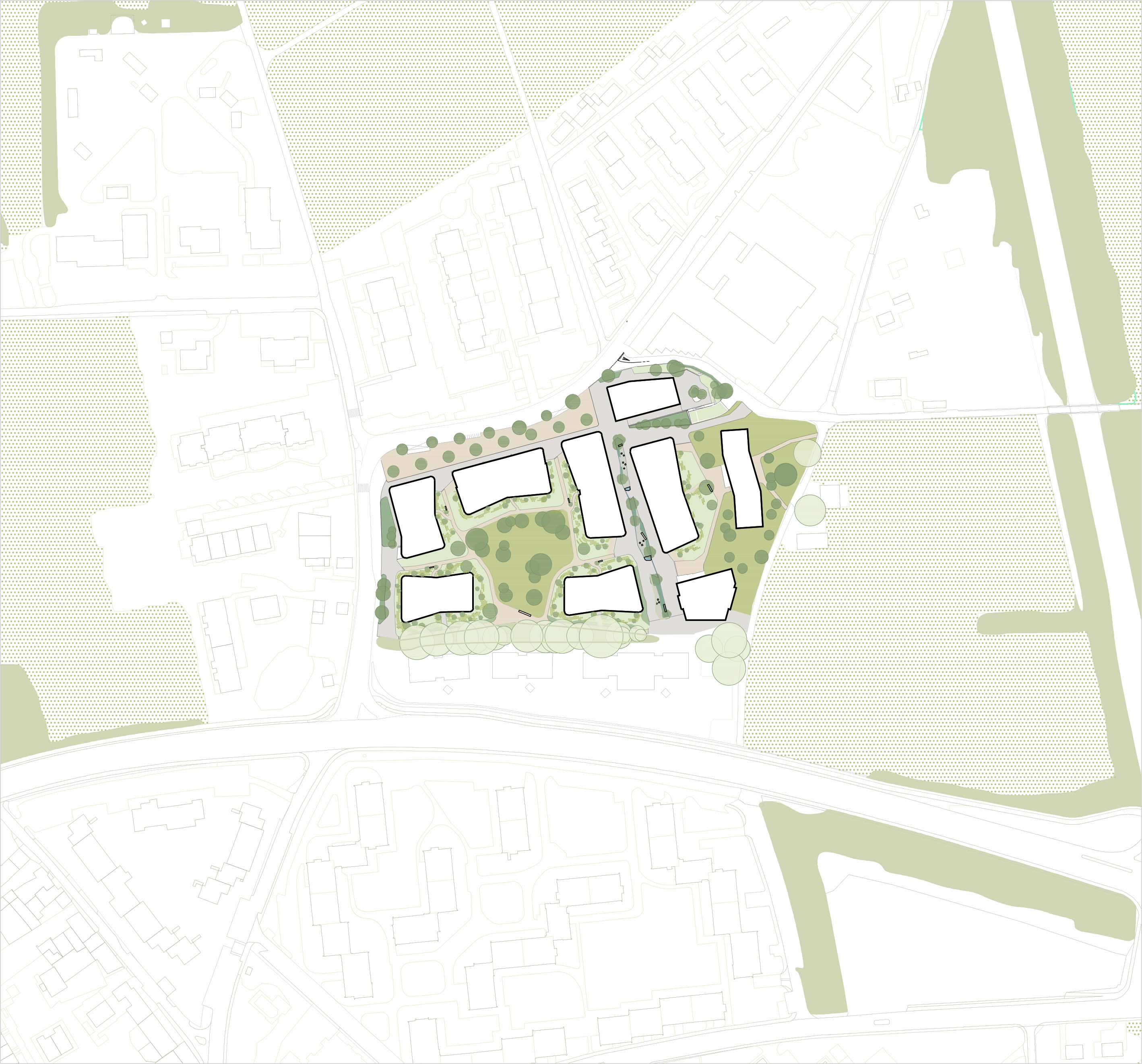 St-Mathieu se situe à la frontière de la ville de Bernex et de la campagne. Au nord, les champs s’avancent vers le Rhône et plus loin le Jura. Au sud, un cordon boisé de chênes, relique du bocage agricole, met les habitations à l’écart du boulevard de Chancy. Les immeubles s’organisent autour du parc central tandis que le mail piétonnier relie les espaces publics du quartier. Sur cette promenade, le riche passé du site est souligné. En effet, lieu de passage connu depuis de l’Antiquité, l’église St-Mathieu du Vuillonnex y était installée jusqu’au XVIIe siècle.